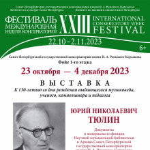Выставка посвящена крупнейшему российскому ученому, педагогу, композитору Юрию Николаевичу Тюлину, автору фундаментальных идей, разработанных им в различных областях музыкальной науки: лада, гармонии, фактуры, музыкального тематизма, мотива, музыкального синтаксиса и музыкальной формы как фундаментальных категорий музыкального мышления. Ю. Н. Тюлин — ученый, внесший существенный вклад в исследование теоретических проблем народной музыки России, Армении, Грузии, Узбекистана, Казахстана, Прибалтики.