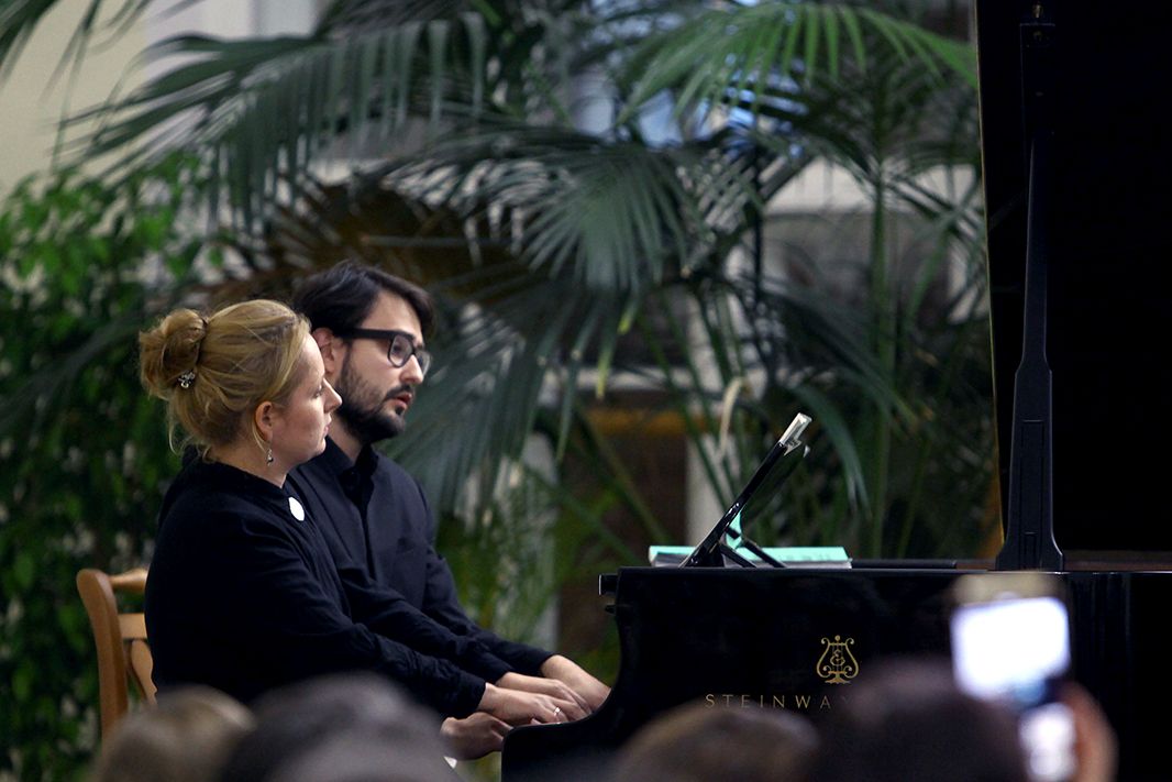 Вечер был приурочен к Международному дню музыки. Лауреаты международных конкурсов Ксения Гаврилова и Александр Кашпурин исполнили разноплановые сочинения российских композиторов. Прозвучали «Русская рапсодия» Рахманинова, авангардная «Гоголь-сюита», созданная Шнитке к спектаклю на Таганке «Ревизская сказка», и контрастные «Зарисовки» Гаврилина.