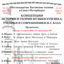12-13 апреля в Санкт-Петербургской консерватории прошла Всероссийская научная конференция "XVI Баховские чтения в Санкт-Петербурге" на тему «Концепции истории и теории музыки XVIII века: ученики и современники И. С. Баха»