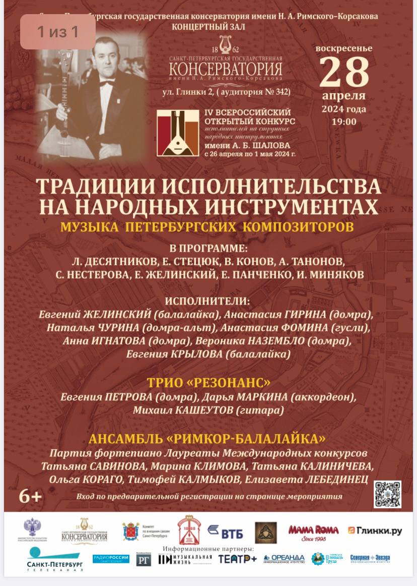 IV Всероссийский Открытый конкурс исполнителей на струнных народных инструментах имени А.Б. Шалова прошел в Санкт-Петербургской государственной консерватории имени Н.А. Римского-Корсакова с 26 апреля по 1 мая 2024 года.