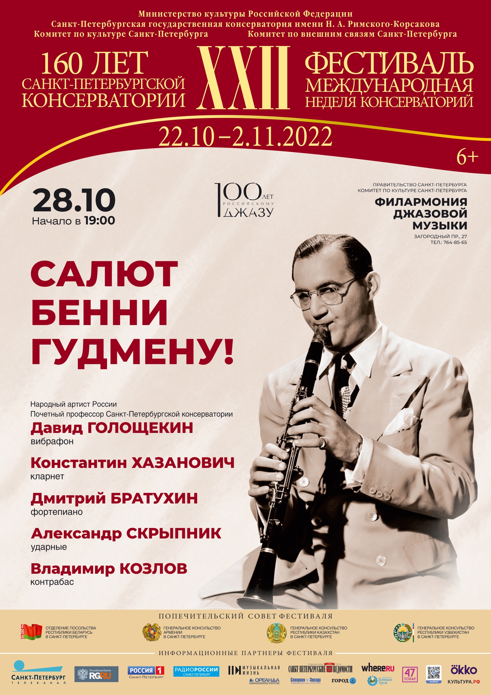 28 октября в Филармонии джазовой музыки Почетный профессор Санкт-Петербургской консерватории, мэтр российского джаза Давид Голощекин в традиционной джазовой программе представит известных петербургских исполнителей.