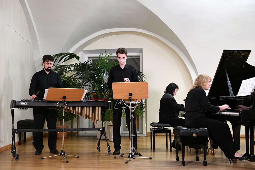 16/11/2022 Фортепианный дуэт Eclair в составе Юлия Тарасевич и Юлия Чербакова. Павел Драп, Лев Зимин, ударные инструменты. Ведущая концерта - музыковед Лариса Ефимова.