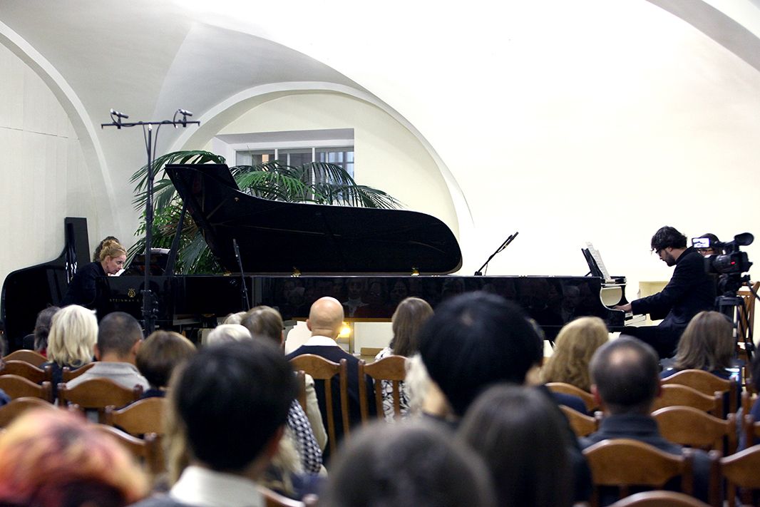 Вечер был приурочен к Международному дню музыки. Лауреаты международных конкурсов Ксения Гаврилова и Александр Кашпурин исполнили разноплановые сочинения российских композиторов. Прозвучали «Русская рапсодия» Рахманинова, авангардная «Гоголь-сюита», созданная Шнитке к спектаклю на Таганке «Ревизская сказка», и контрастные «Зарисовки» Гаврилина.
