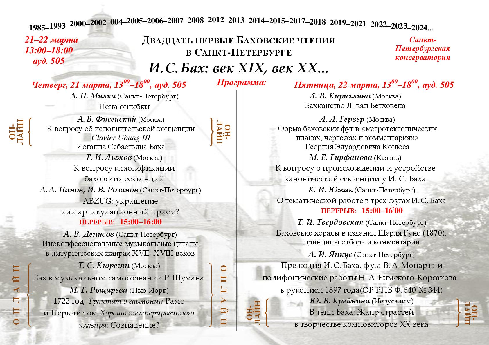 21–22 марта 2024 года состоится международная конференция «XXI Баховские чтения в Санкт-Петербурге».