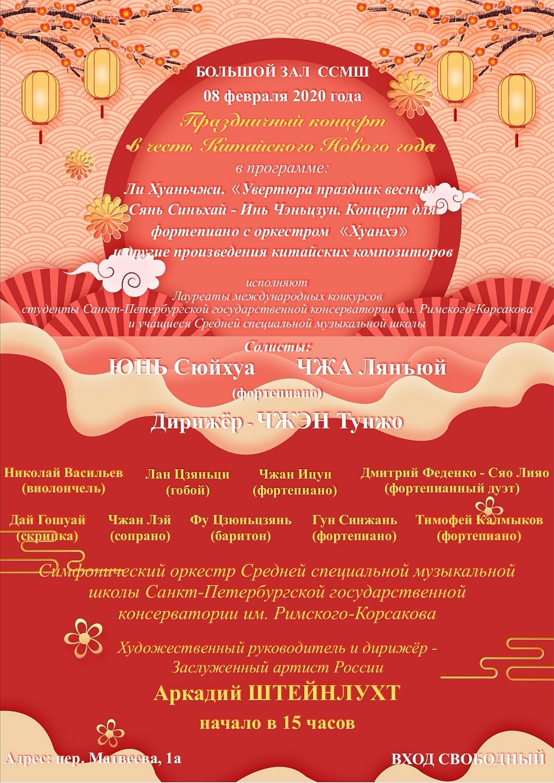 8 февраля 2020 года в 15 часов в Большом зале ССМШ состоится праздничный концерт, посвященный наступлению Китайского Нового года.